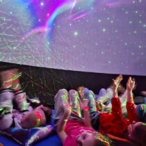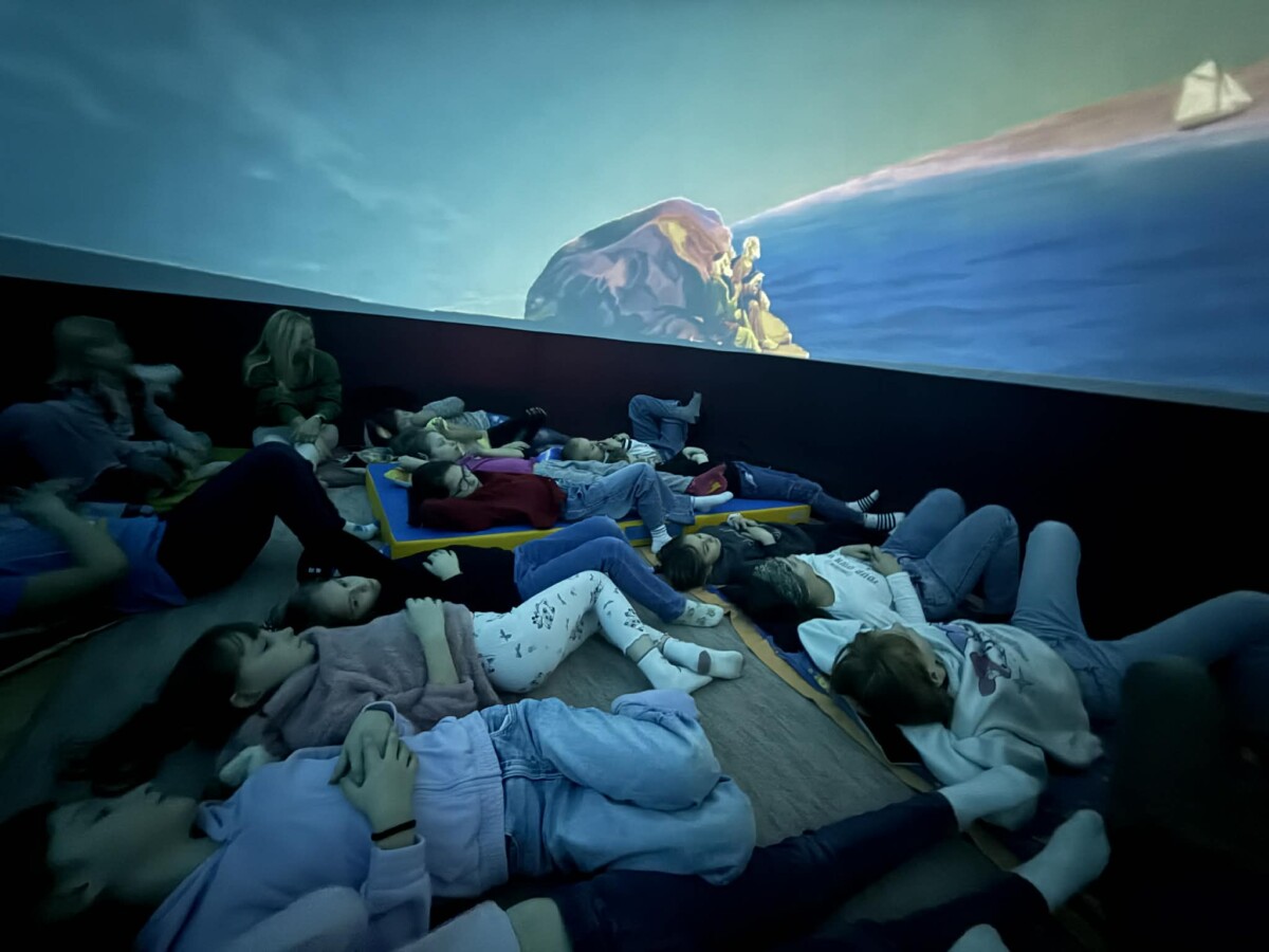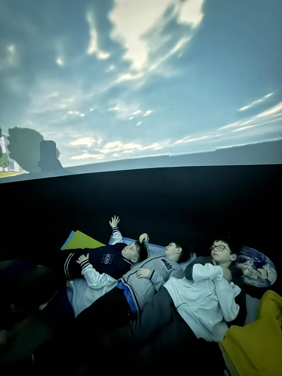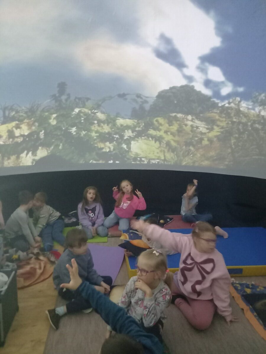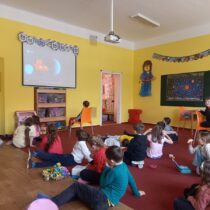 Vesmírné dobrodružství ve školní družině jsme v pátek 20. března zakončili v mobilním planetáriu Morava, které k nám zavítalo s příběhem Astronomie pro děti. Malí astronauti procestovali v kouzelném raketoplánu Sluneční soustavu a dozvěděli se spoustu zajímavostí o Slunci. Další představení bylo určeno pro menší děti. Vyprávělo o setkání polárního medvěda a zvídavého tučňáka, kteří společně přestavěli starou ponorku ve vesmírnou loď a zažili spoustu příhod uprostřed nekonečného prostoru.