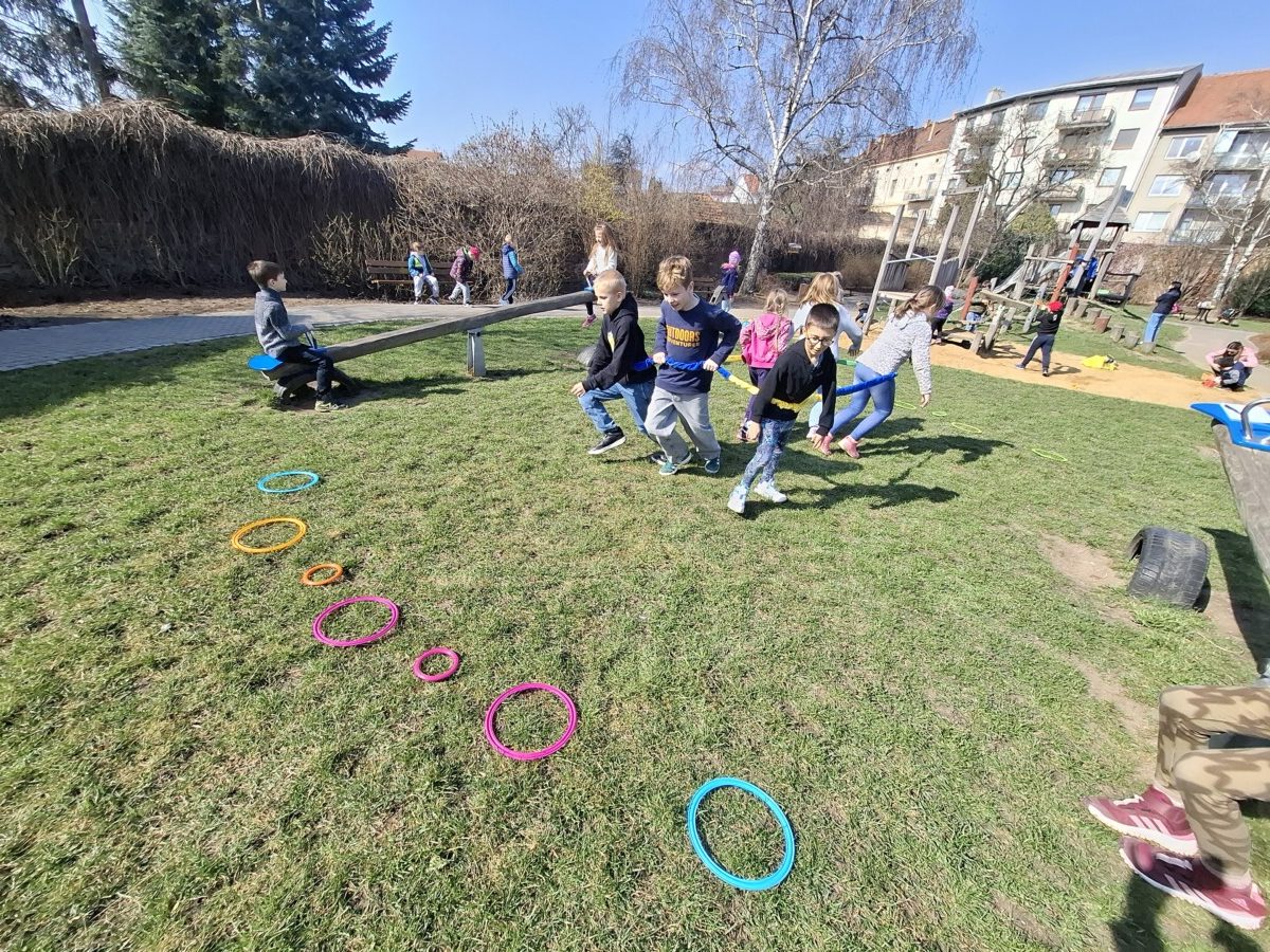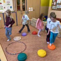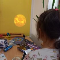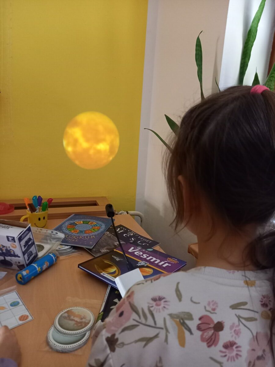 Velkým zážitkem byla návštěva Měsíce. Děti si nasadily brýle naruby, což jim ztížilo orientaci, a pohybovaly se po dekách, aby si vyzkoušely, jak náročný může být pohyb v neznámém prostředí. Nechyběla ani vesmírná honička, při které se hrálo na planety a Zemi v neustálém pohybu. Při této aktivitě byla procvičena rychlost, postřeh i spolupráce.
